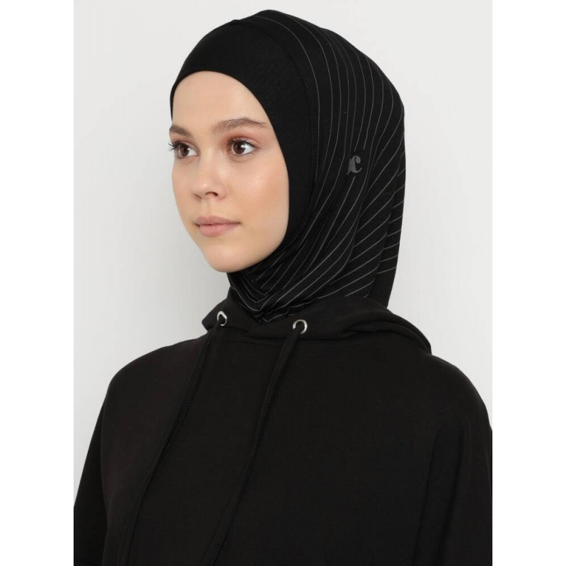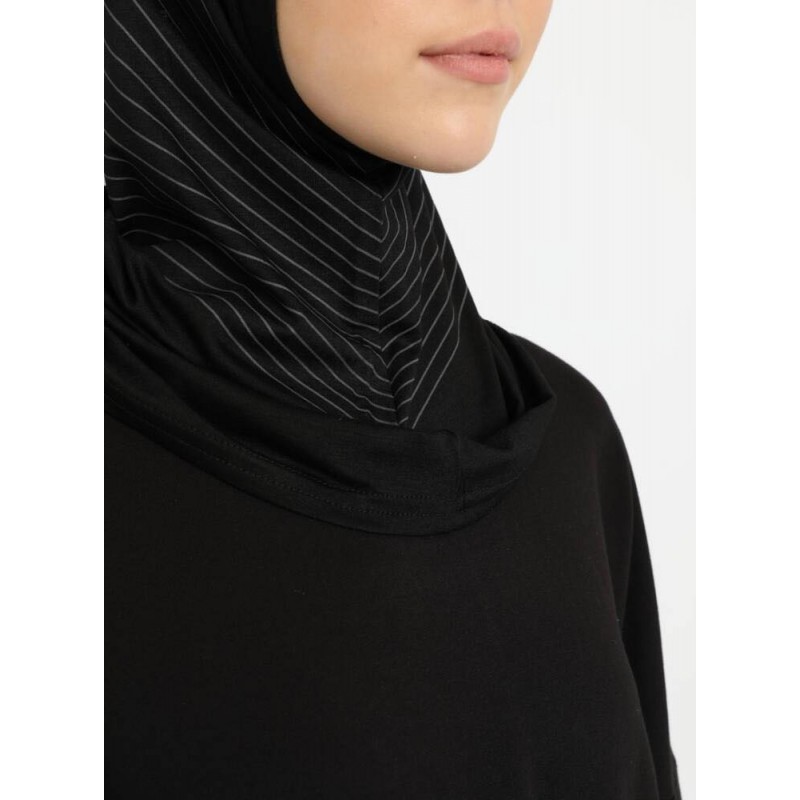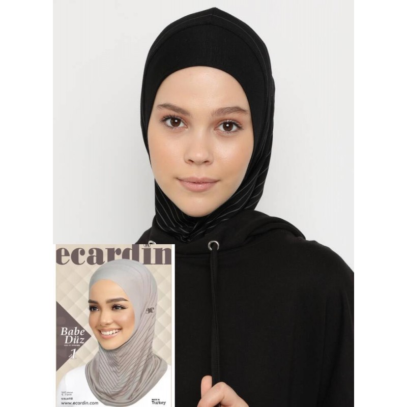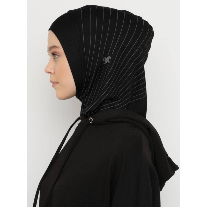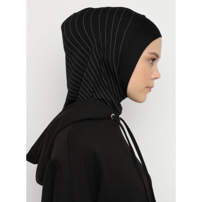 Хіджаб-балаклава без нахльосту Babe Düz Ecardin Model 1 Чорний із сірими смужками