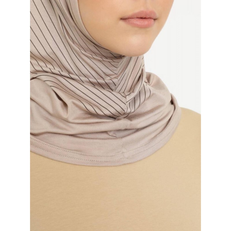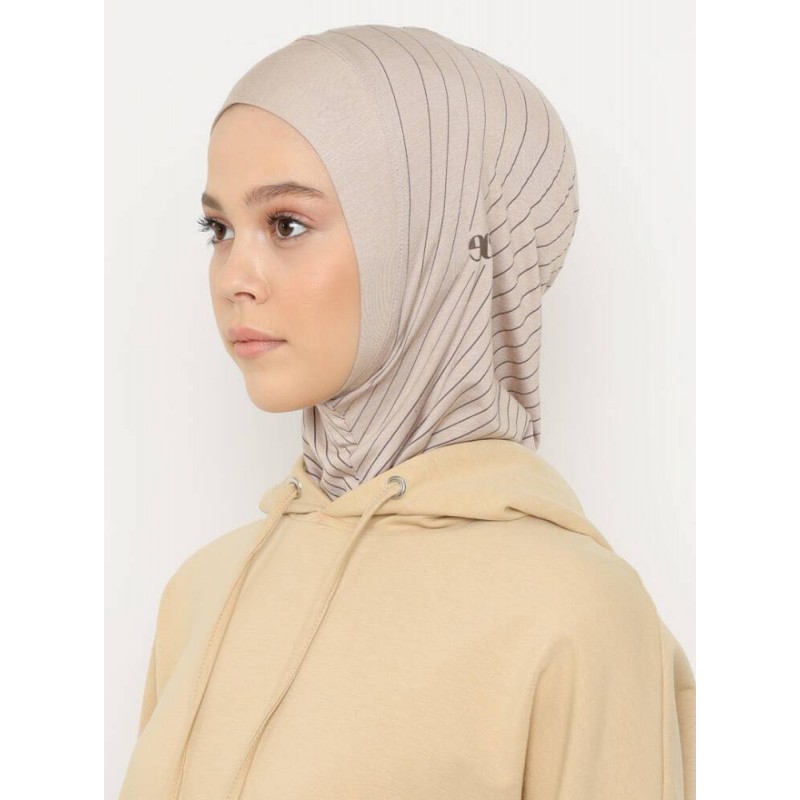 Хіджаб прикрашений тонкими діагональними смугами, які додають образу елегантності. Підходить для школярок, підлітків і дорослих жінок. Ідеально пасує для занять спортом, навчання, роботи або прогулянок.