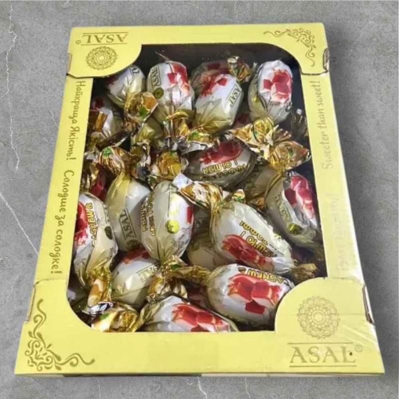 Східні цукерки з насиченим смаком тоффі та ароматом кеш’ю від бренду ASAL. М’які, тягучі та водночас злегка хрусткі — ідеальні ласощі для поціновувачів солодкого. Упаковані в яскраву подарункову коробку, що робить їх чудовим варіантом для подарунка.