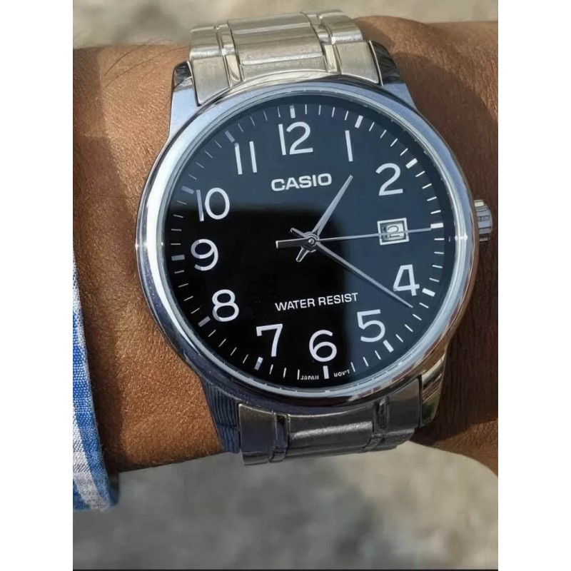 Casio MTP-V002D-1B — класичні й елегантні чоловічі годинники, які чудово доповнять образ як у робочий день, так і для вечірніх виходів. Корпус і браслет зі сталі забезпечують міцність і стиль. На чорному циферблаті — чіткі арабські цифри, тонкі стрілки й віконце дати, що полегшує орієнтацію в часі.
