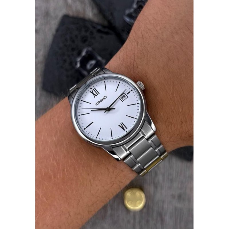 Casio MTP-V002D-7B3 – це стильні класичні чоловічі годинники, які чудово пасують як для ділових зустрічей, так і для щоденного використання. Корпус та браслет виготовлені з нержавіючої сталі, що забезпечує надійність і довговічність. Білий циферблат із чіткими арабськими цифрами та віконцем дати гарантує відмінну зчитуваність у будь-який час.