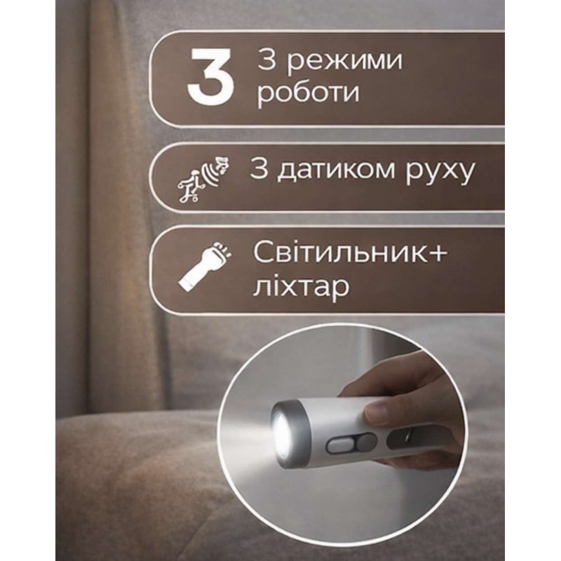 Нічник акумуляторний 2в1 з датчиком руху та ліхтариком LED USB-C 500 mAh