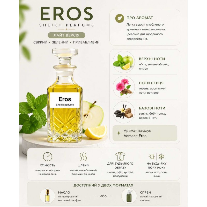 Теги: Eros,чоловічий аромат,свіжий парфум,зелений аромат,фужерний аромат,sheikh perfume