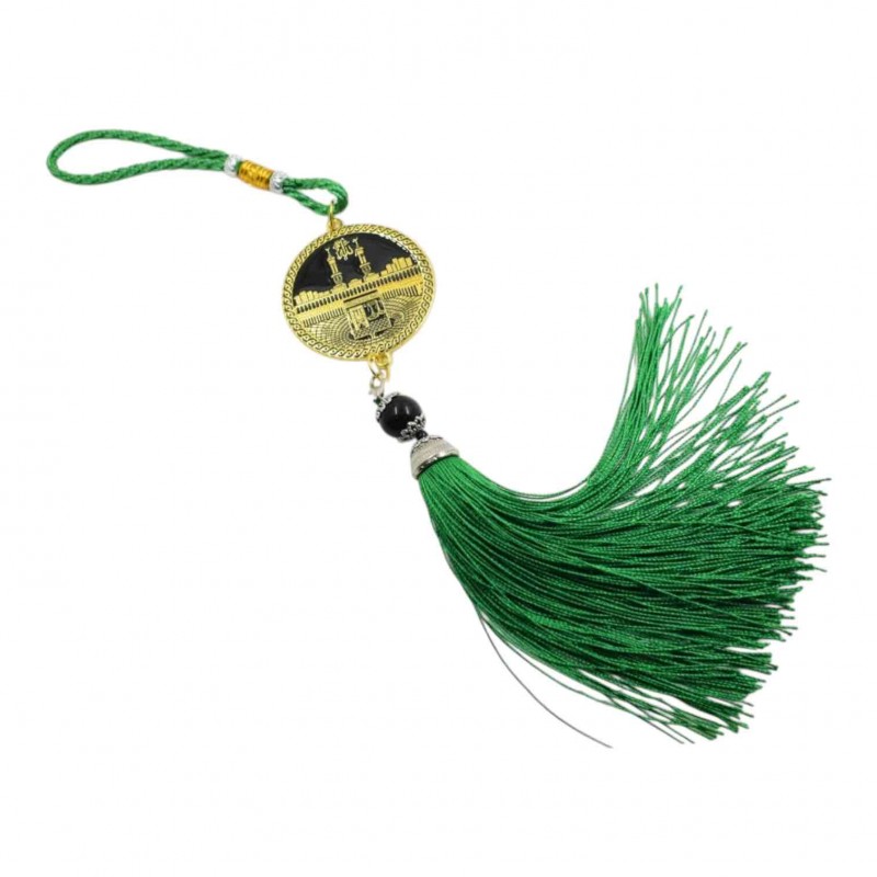 Елегантна мусульманська підвіска з двостороннім зображенням — з одного боку священна Кааба в Мецці, з іншого — Мечеть Пророка ﷺ у Медині. Виготовлена з міцного металу, прикрашена декоративною китицею. Підходить для автомобіля, дому або як подарунок. Не є оберегом, адже оберігає лише Аллах.