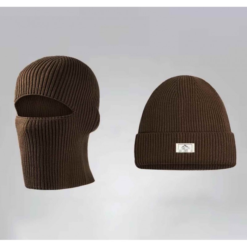 Зимова в'язана шапка-балаклава 2 в 1 тепла вітрозахисна Коричневий